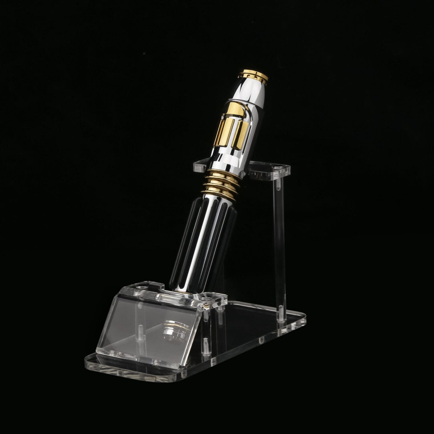 Stand out with unmistakable Jedi authority using the Mace Windu Lightsaber. This premium hilt combines polished metal with bold gold accents and deep black grip sections, creating one of the most recognizable and commanding saber designs ever crafted.