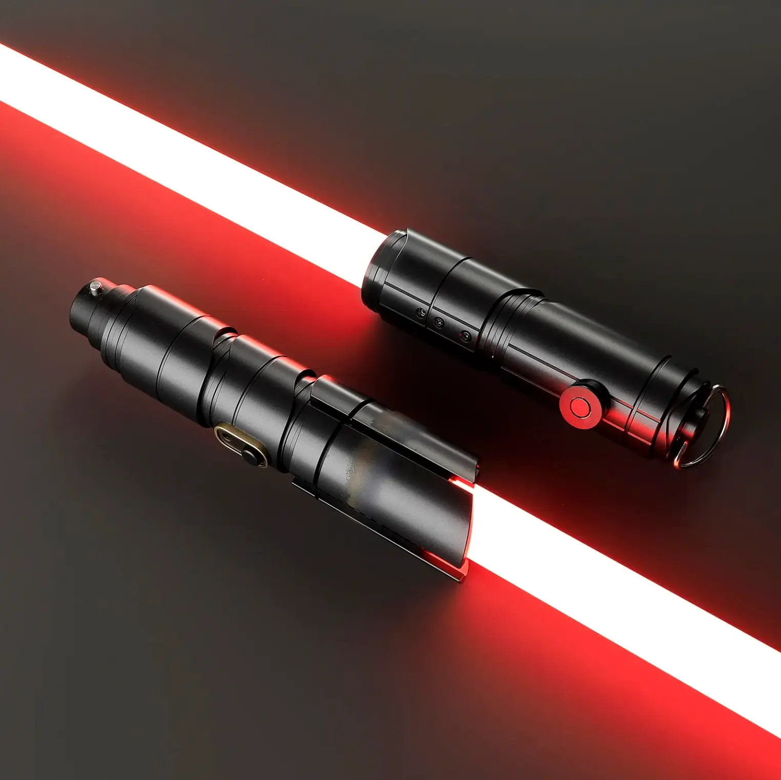 When ignited, both sabers emit a powerful, vibrant red blade, symbolizing the strength and intensity of dark-side Force users. However, the blade colors can be customized to suit your preferences, providing versatility in appearance. The **advanced smooth swing technology** ensures that each saber responds fluidly to every motion, delivering a realistic and immersive experience.